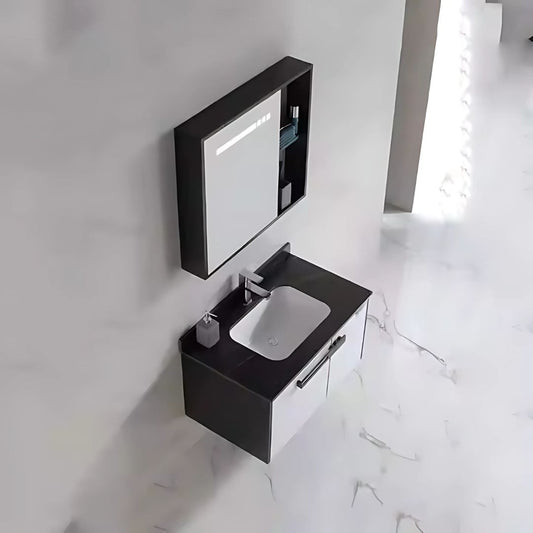 Super pret BLACK FRIDAYSet Mobilier pentru Baie RHODOS, 80cm, 2 Piese, Negru si Alb