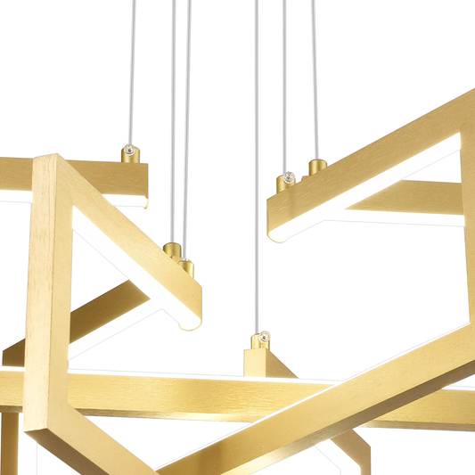 Lustra LED cu telecomanda ,Suspendata 96W, 4 Elemente, lumina Rece/Calda/Neutra, Dimabila, Inaltime Reglabila, Auriu