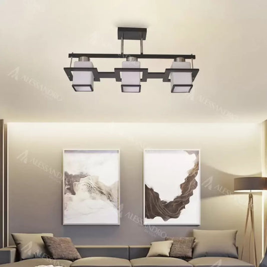 Lustra VANJA cu Abajur Patrat, 3 X Dulie E27 Alb / Negru
