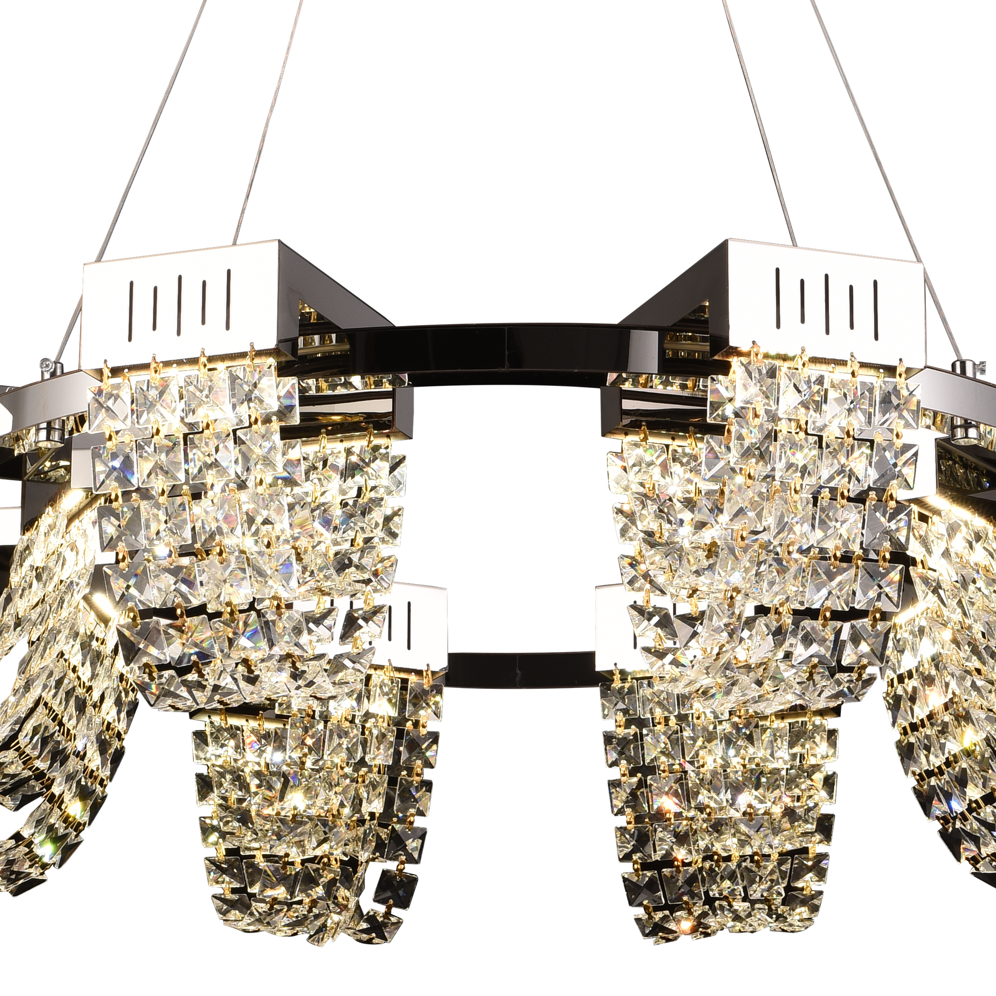 Elementele din cristal creează reflexii spectaculoase, adăugând un plus de rafinament decorului. Înălțimea reglabilă permite adaptarea ușoară la diverse înălțimi de tavan, transformând modelul CC370/800CH într-o piesă centrală elegantă, cu impact vizual modern.