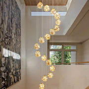 Constructia sa este verticala, constand dintr-o serie de sfere de cristal suspendate pe fire subtiri care coboara in spirala de la o baza metalica aurie cu diametrul de 60 cm. Acest aranjament umple vizual spatiul pe inaltime si functioneaza ca un punct de referinta in incapere, directionand privirea de sus in jos.