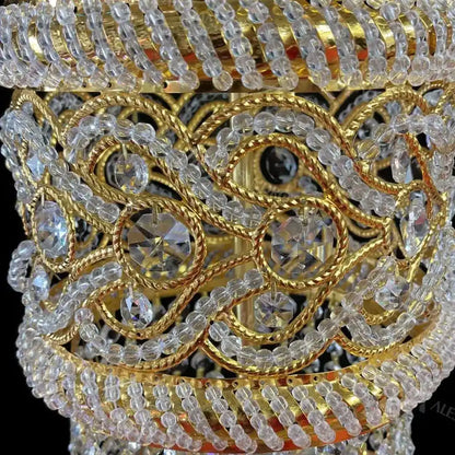 Conferă eleganță încăperii tale prin acest candelabru deosebit. Sursele de lumină sunt înconjurate de fire ornamentate cu un număr impresionant de cristale. Odată ce candelabrul este aprins, reflexia luminii prin cristalele atent pozitionate creează o sursă de lumină unică, extraordinară din punct de vedere estetic.