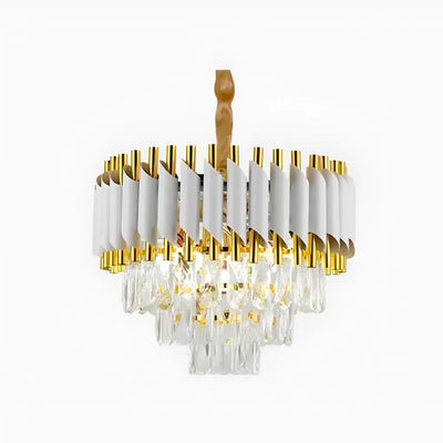 Candelabru Cristal Versailles Nobile, 4xE14, Ø40cm, Auriu Lucios si Alb, Inaltime Reglabila