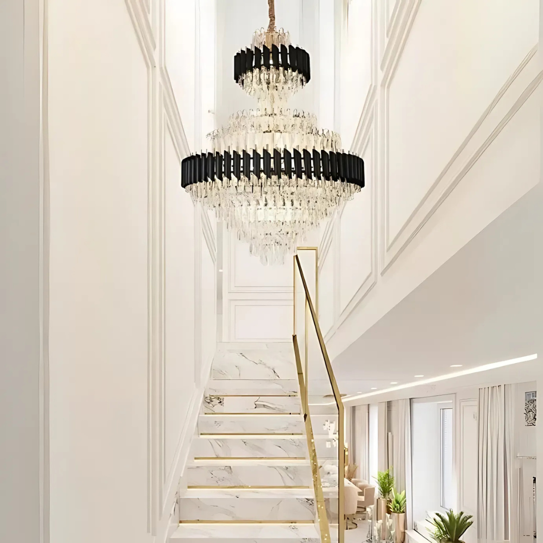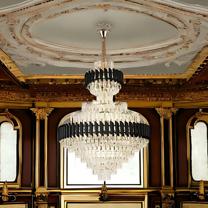 - Design Grandios & Materiale Premium: Cu o forma rotunda si un finisaj negru sofisticat, realizat dintr-o combinatie luxurianta de cristal si metal, acest candelabru suspendat se impune prin prezenta sa rafinata, ideal pentru a completa decoruri somptuoase.