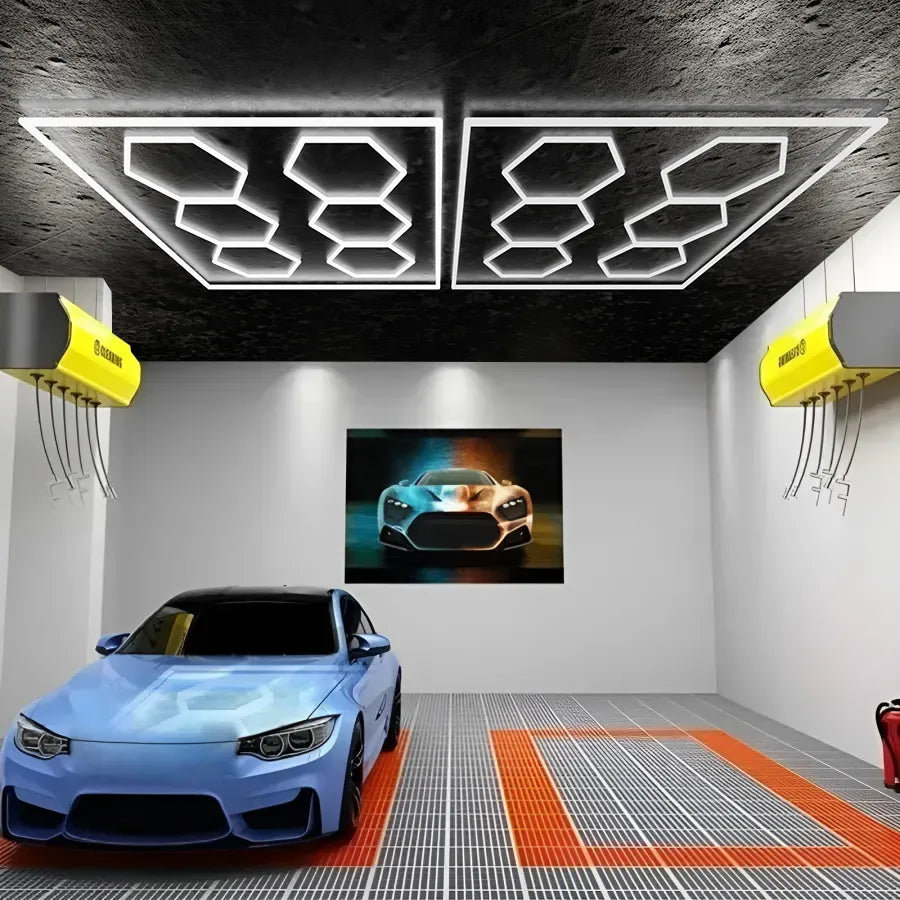 Luminile de tip honeycomb sunt soluții inovatoare și estetice, ideale pentru showroom-uri auto, garaje și spații industriale care necesită o iluminare eficientă și modernă. Aceste panouri de iluminat au un design unic, inspirat de fagurele de albine, ceea ce le conferă un aspect tehnologic și futurist, perfect pentru evidențierea vehiculelor și a altor produse premium.