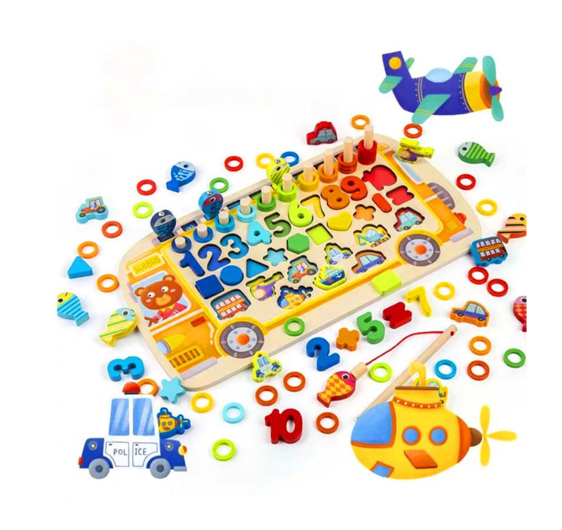Joc Puzzle Educativ cu Vehicule, Lemn si Plastic, 3 Ani+, Multicolor