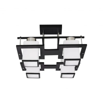 - Design Epurat, Joc de Contraste: Cu o forma geometrica distincta, ce integreaza patru abajururi patrate in nuante atemporale de alb si negru, aceasta lustra creeaza un echilibru vizual dinamic, conferind un aer rafinat si contemporan.