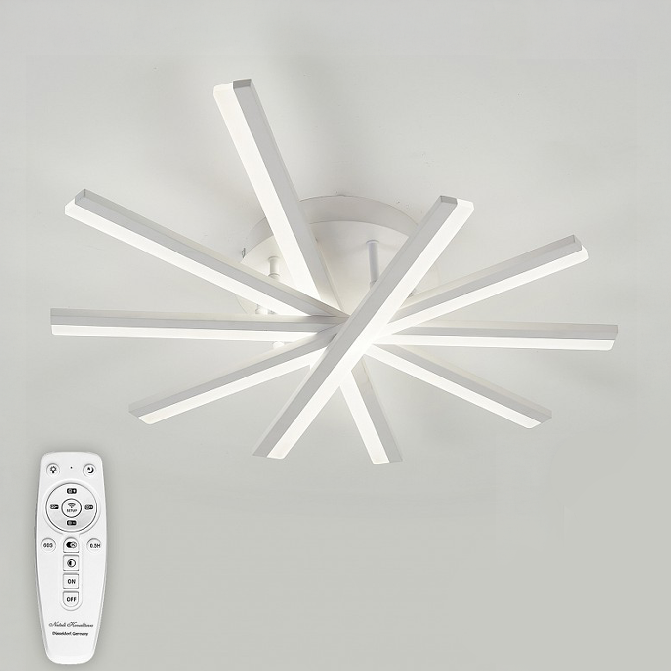 Aceasta lustra LED moderna, cu forma geometrica dinamica si finisaj alb mat, aduce un accent architectural elegant in orice interior contemporan. Gandita pentru functionalitate si flexibilitate, este echipata cu telecomanda ce permite ajustarea temperaturii de culoare si a intensitatii luminii, adaptandu-se perfect oricarui moment al zilei.