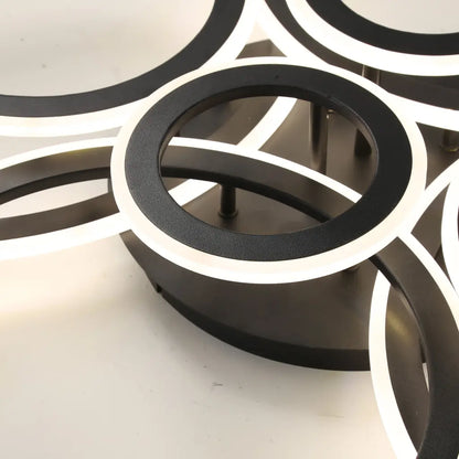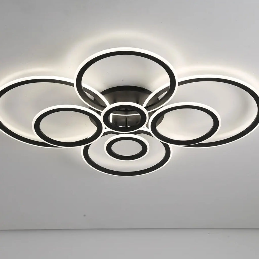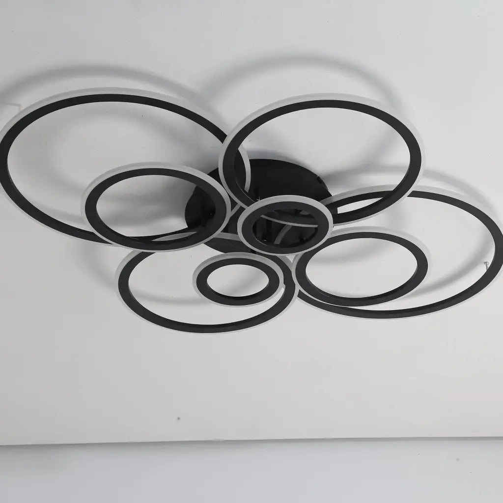 Lustra LED cu telecomanda BETTY 130W, 8 Cercuri, lumina Rece/Calda/Neutra, Dimabila, Negru