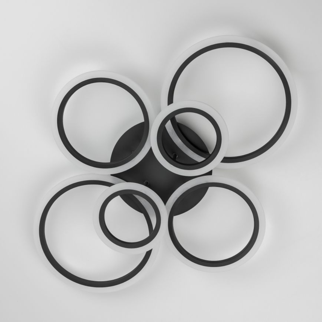 Lustra LED cu telecomanda BETTY 82W, 6 Cercuri, lumina Rece/Calda/Neutra, Dimabila, Negru