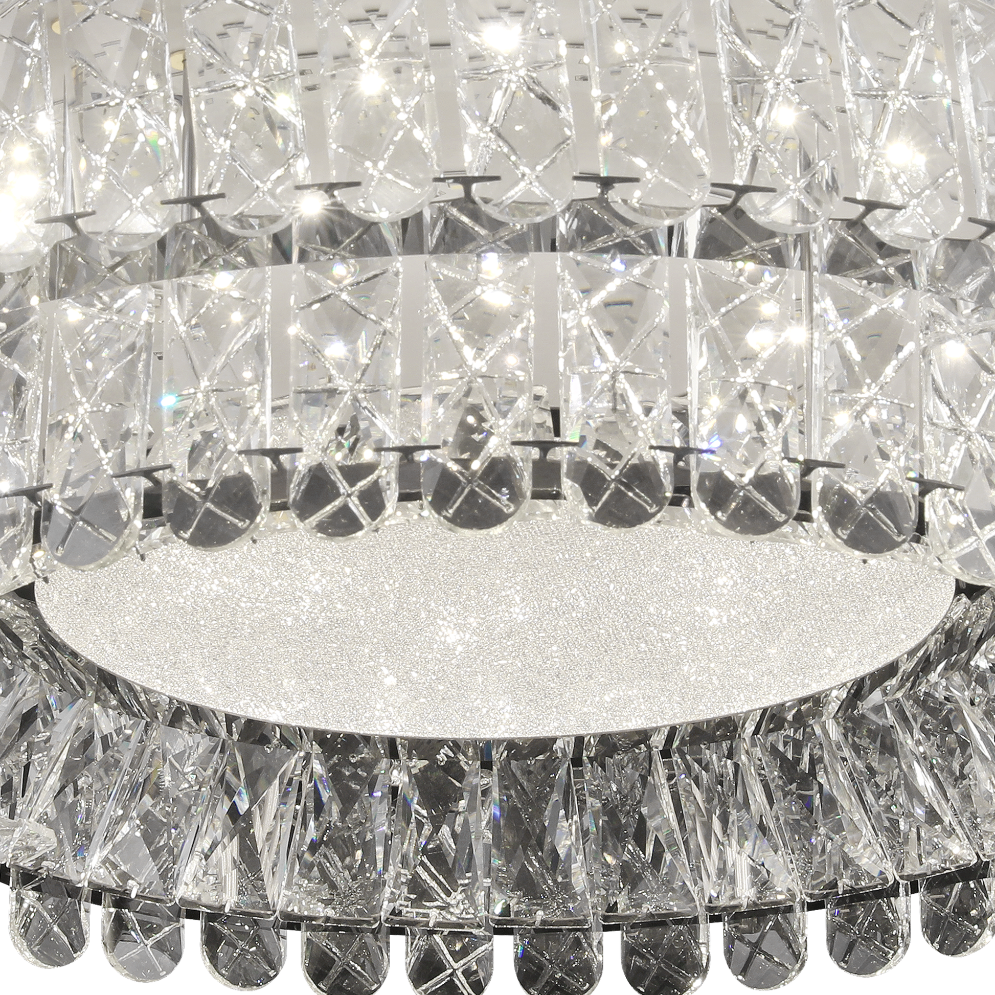 Lustra LED cu Telecomanda, LLC153/500CH, Cristal si Metal, 59W, 1 Cerc, Dimabila, Inaltime Reglabila, Lumina Rece/Calda/Neutra, Iluminat Luxos
