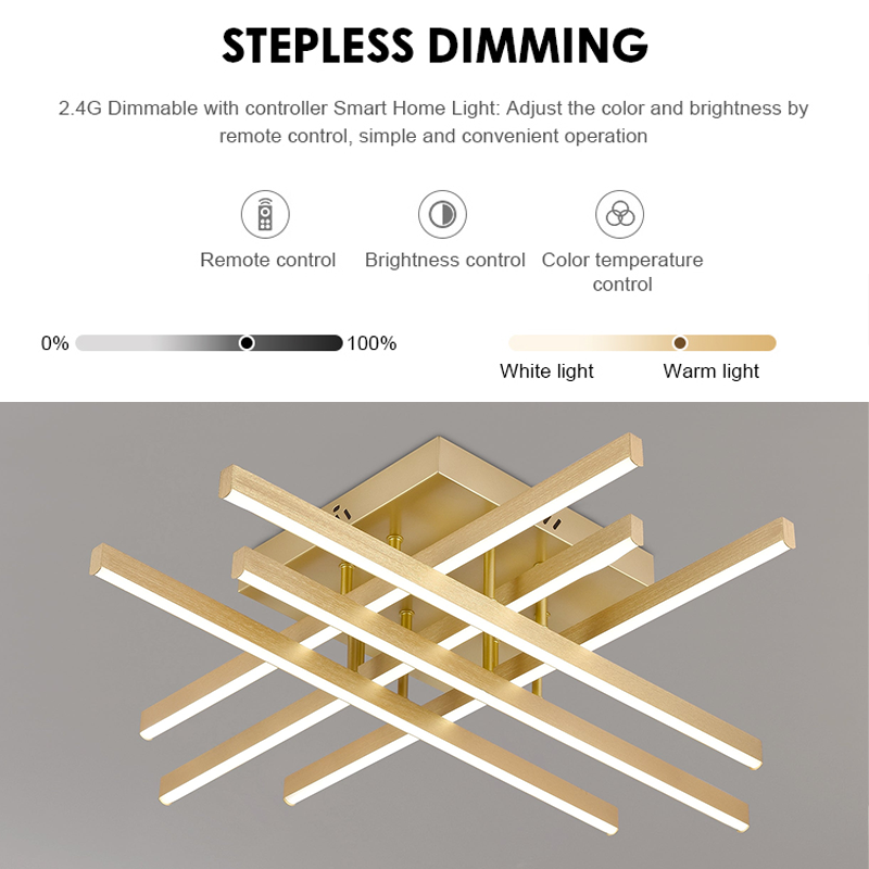 Lustra LED cu Telecomanda LINEX, 81W, Lumina 3000K/4000K/6000K, Dimabila, Auriu