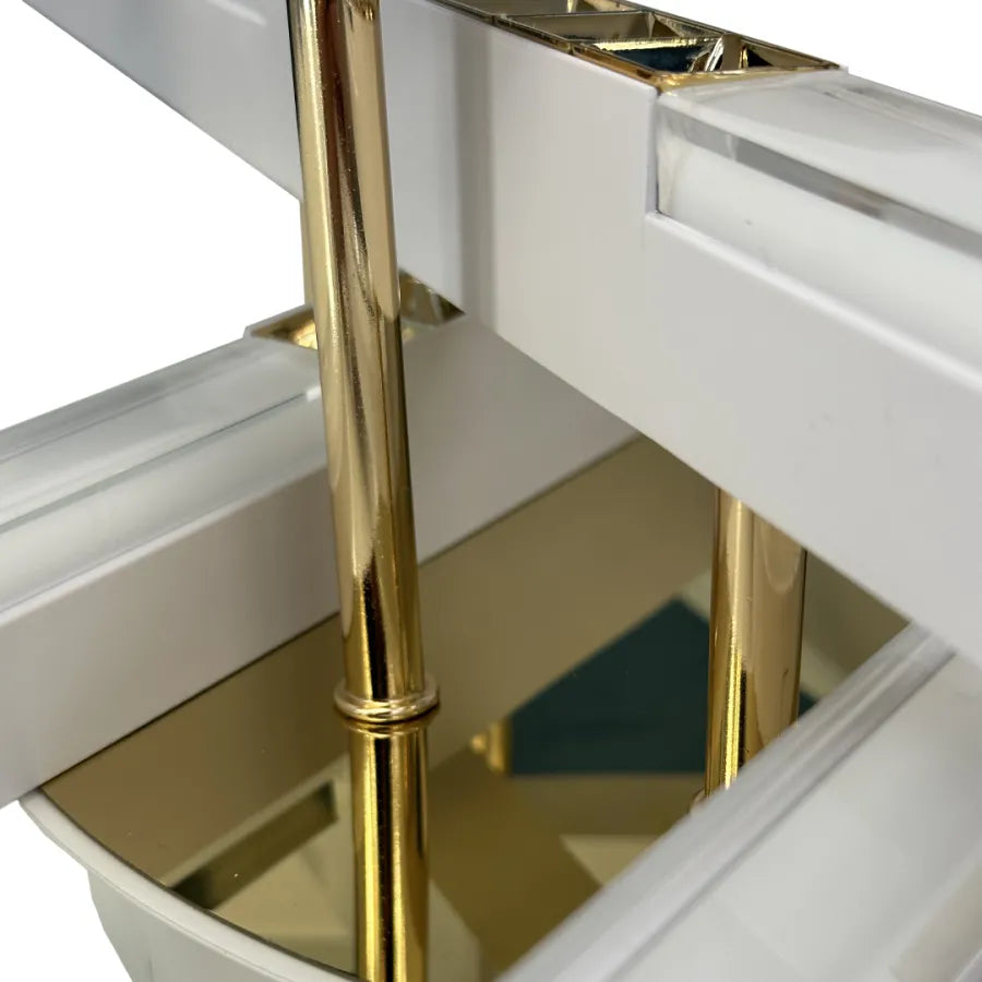 Combinația de alb și auriu adaugă un plus de stil și eleganță designului liniar, făcând-o potrivită pentru diverse stiluri de interior, de la modern la clasic reinterpretat.