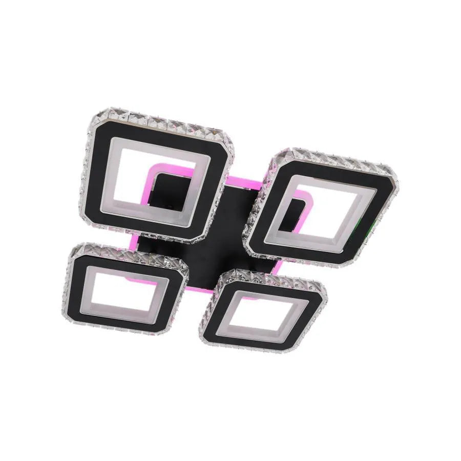 Lustra LED cu telecomanda si cristal LEILA RGB 69W, 4 Patrate, lumina Rece/Calda/Neutra, Dimabila, Negru