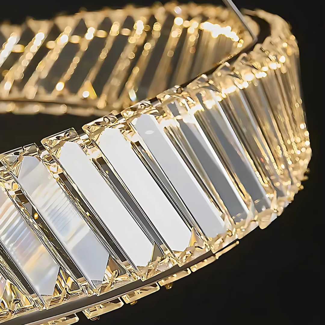 Lustra LED PRISM Luminis, Cristal si Metal, 210W, 4 Cercuri, Dimabila, Inaltime Reglabila, Lumina Rece/Calda/Neutra, Iluminat Luxos