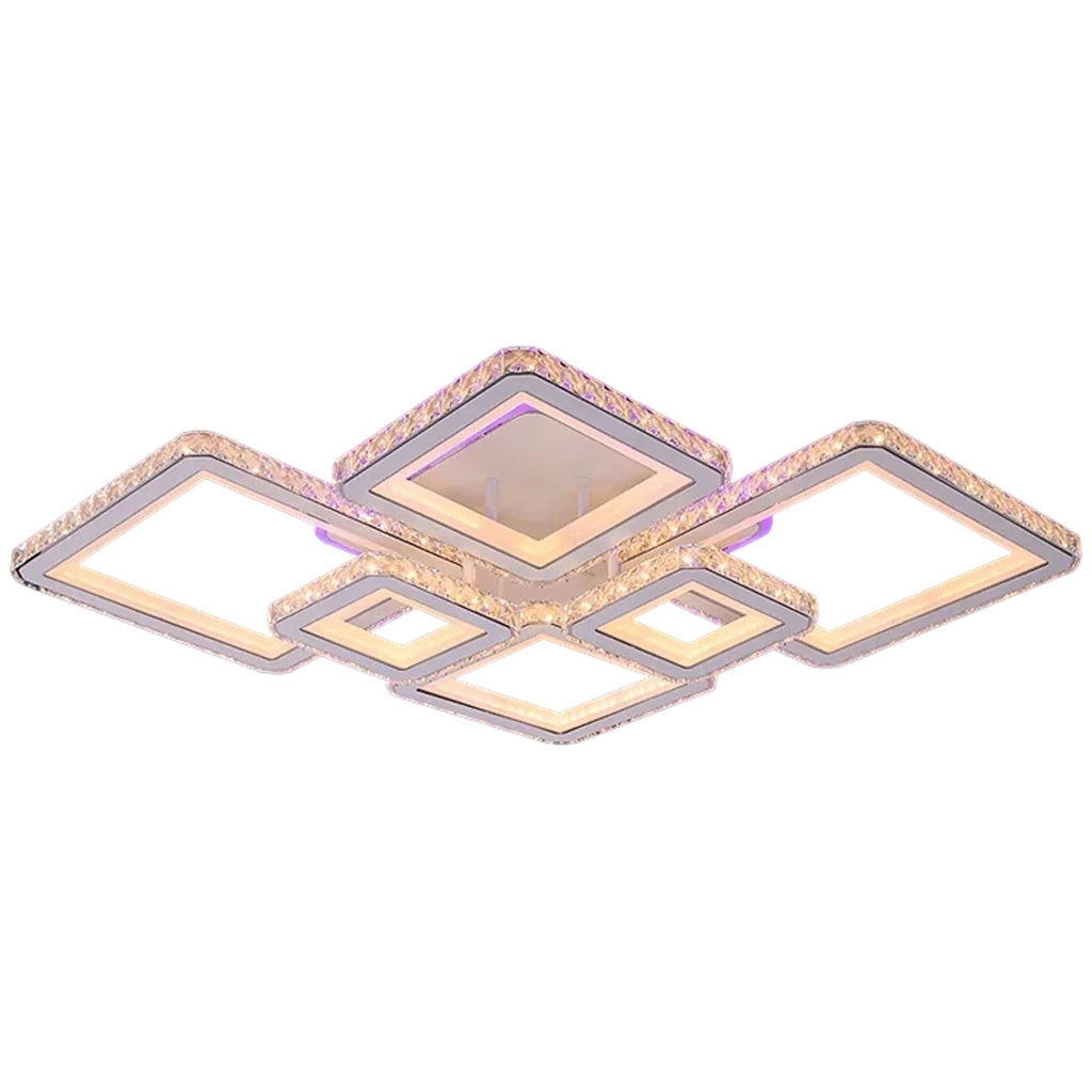 Lustra LED cu telecomanda si cristal QUADRIS RGB 175W, 6 Patrate, Lumina Rece/Calda/Neutra, Dimabila, Alb
