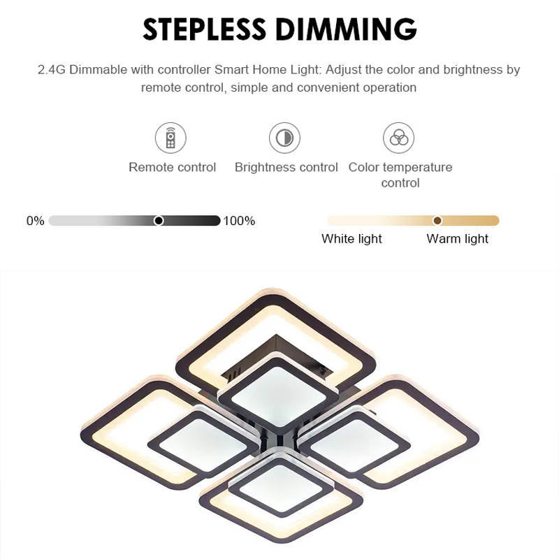 Lustra LED cu telecomanda SUSAN 96W, 4 Patrate, lumina Rece/Calda/Neutra, Dimabila, Negru