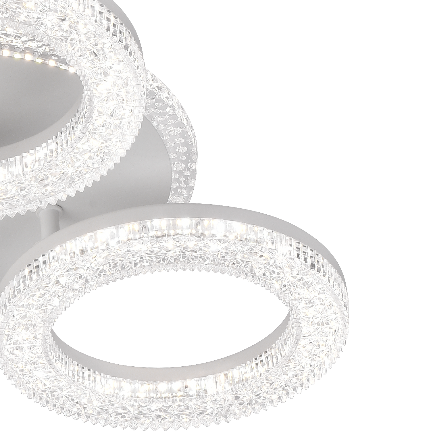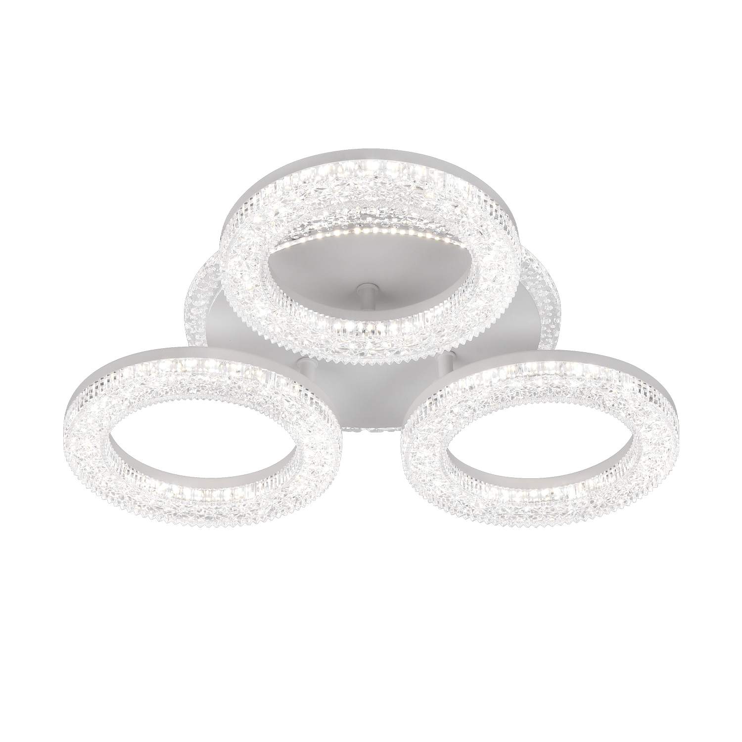 Lustră LED FREJA cu Telecomandă, 50W, 3000K/4000K/6000K, Dimabil, Alb, Cristale, 3 Cercuri