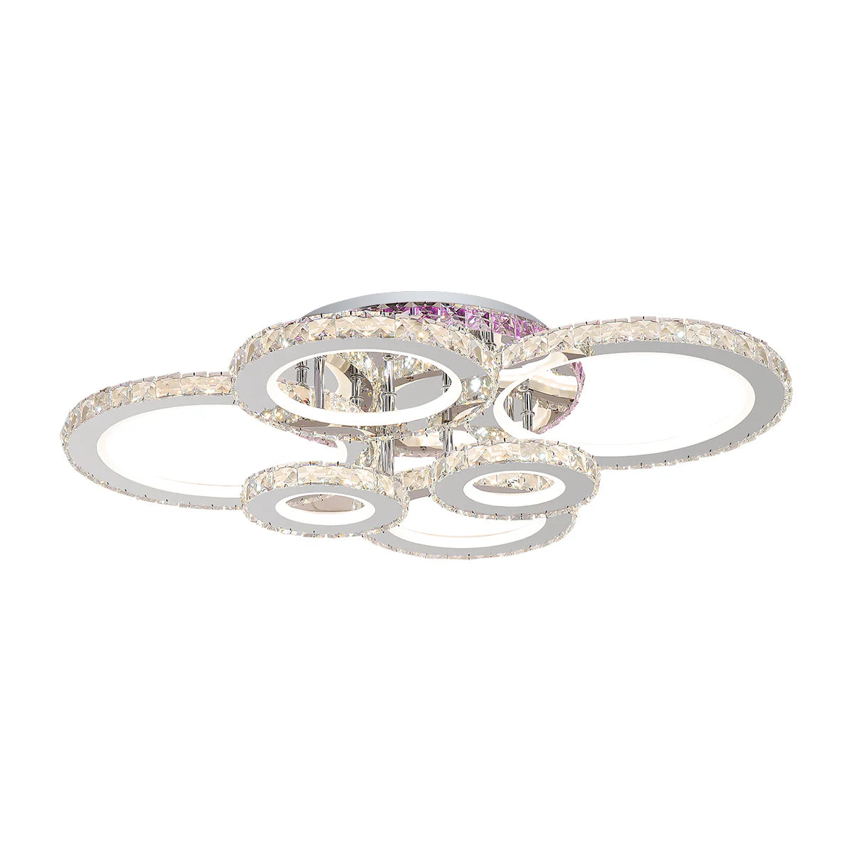 Lustra LED cu telecomanda si cristal NOVA ROTONDA RGB 144W, 6 Cercuri, lumina Rece/Calda/Neutra, Dimabila, Crom Lucios