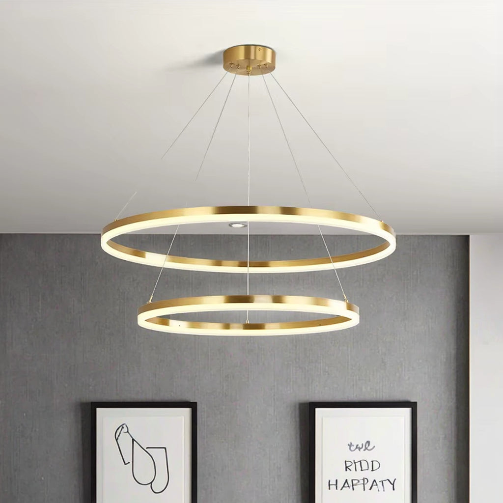 Lustra LED suspendata cu telecomanda CHRISTINE, 41W, 2 Cercuri, lumina Rece/Calda/Neutra, Dimabila, Auriu Lucios, Inaltime Reglabila
