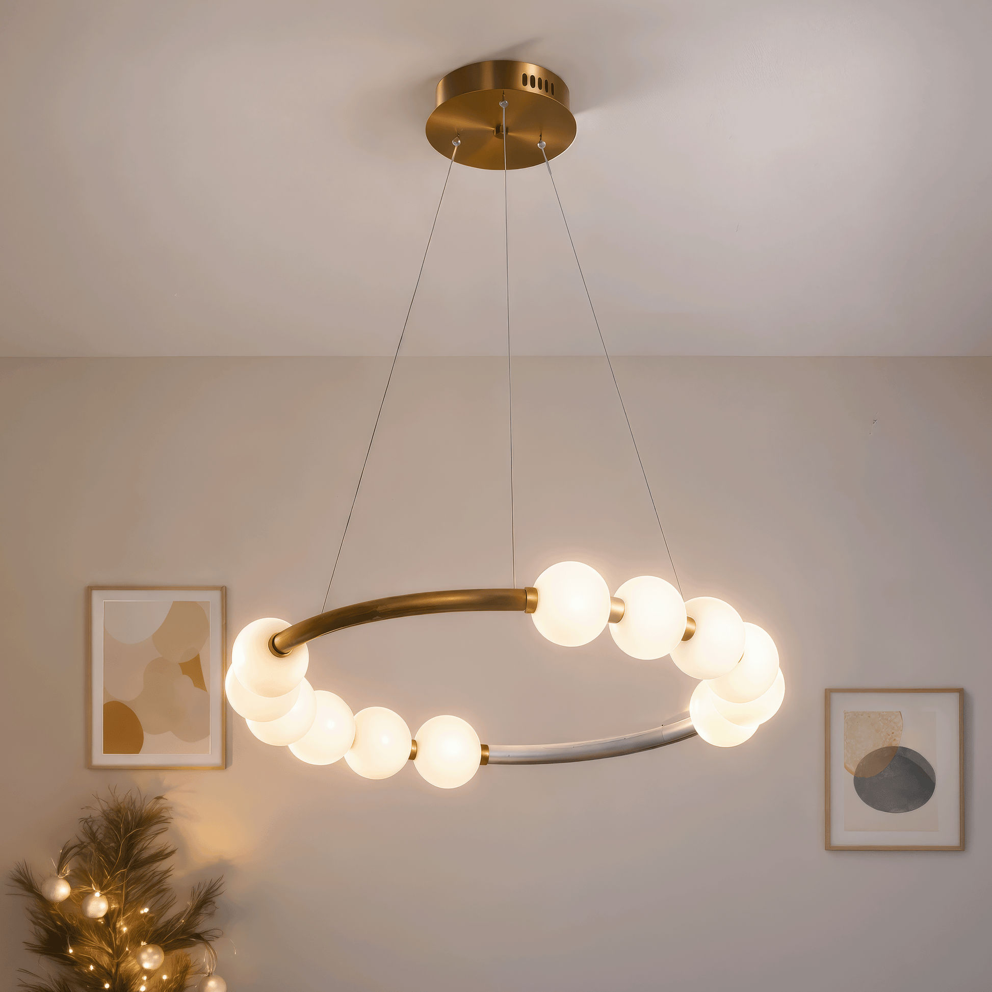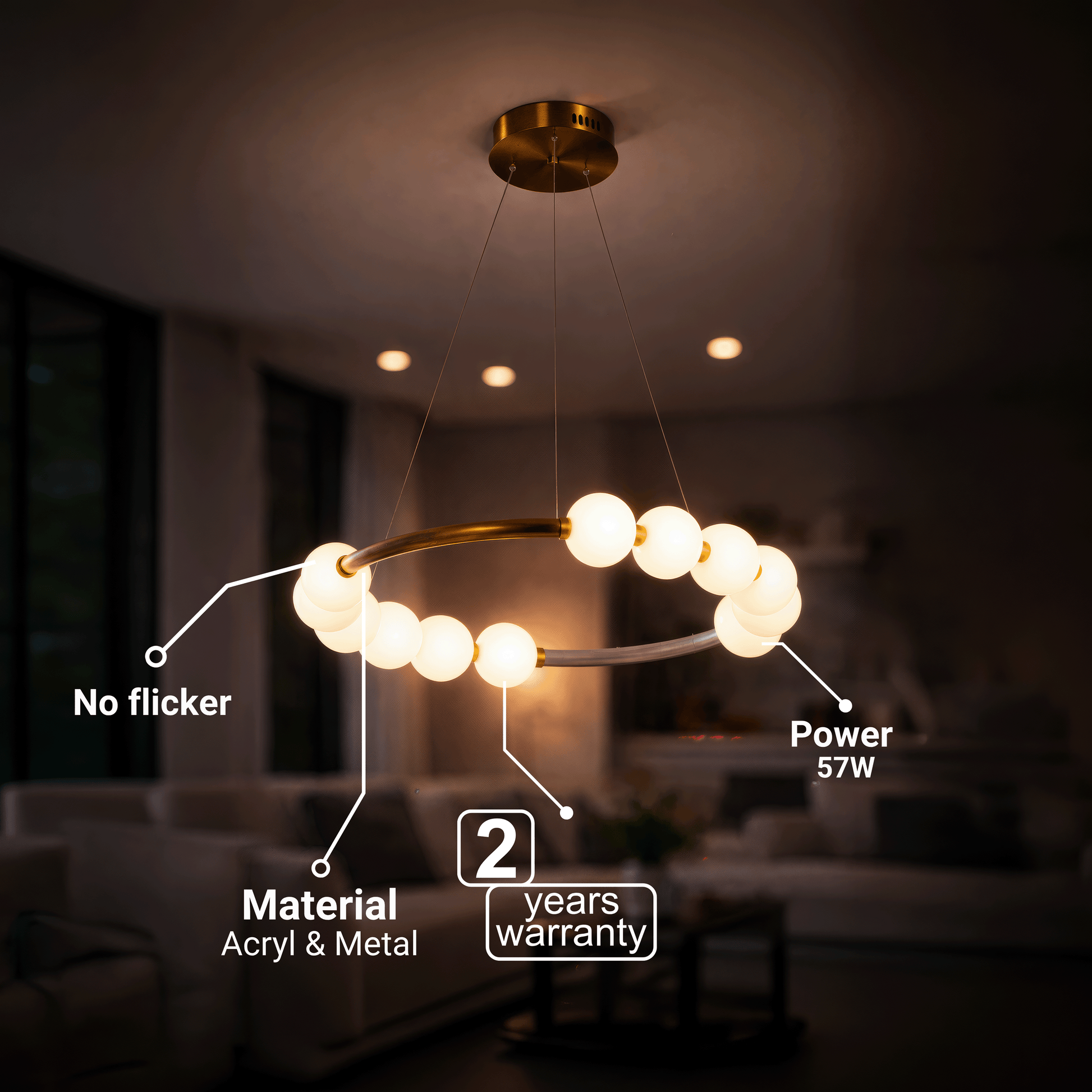 Lustră Suspendată LED Acril Nova 57W cu Telecomandă, Dimabilă, 3000K/4000K/6000K, Auriu, Metal și Acril