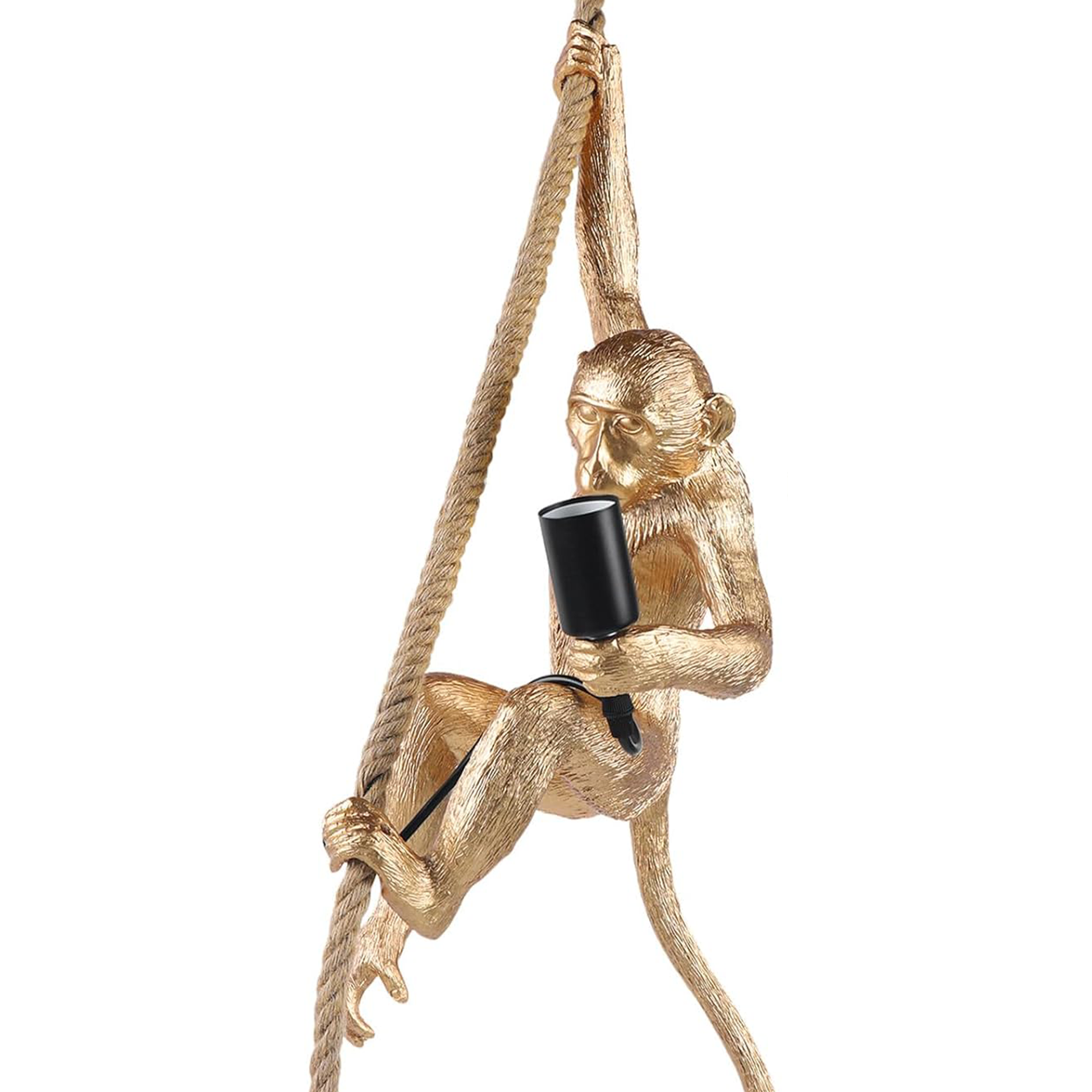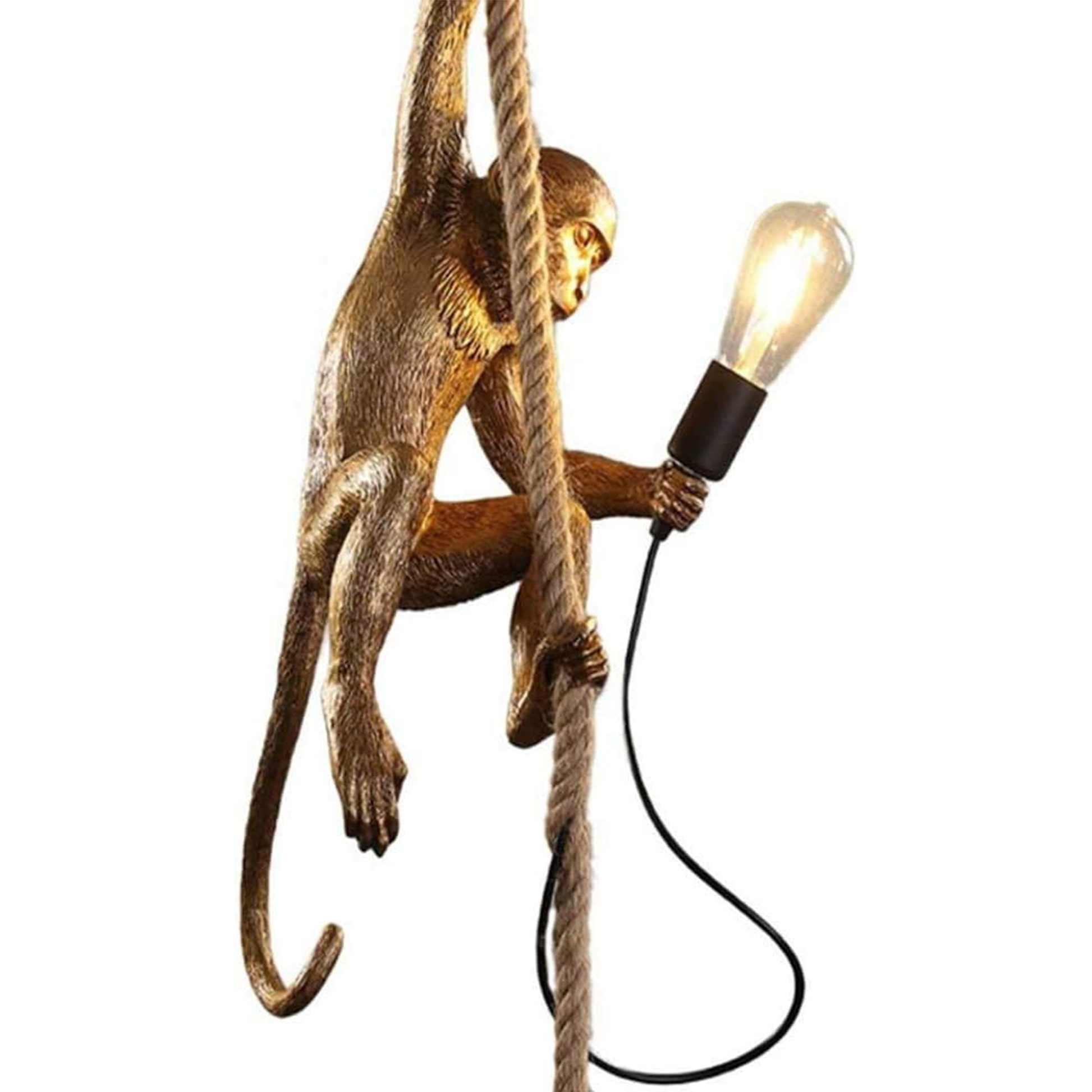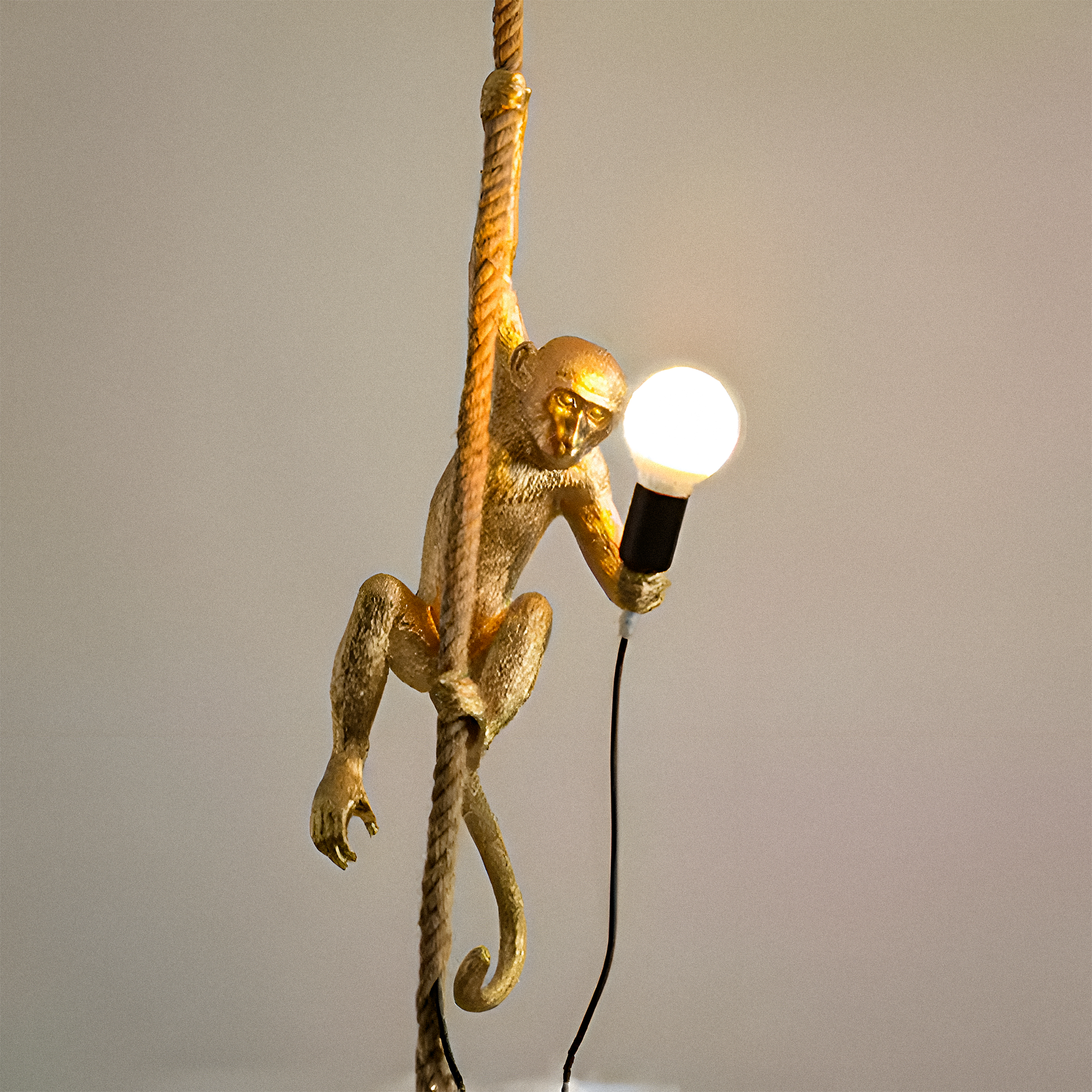 Elementul central în formă de maimuță, realizat din metal, combinat cu sfoara decorativă, creează un accent vizual puternic și un stil eclectic, cu influențe vintage și industriale.