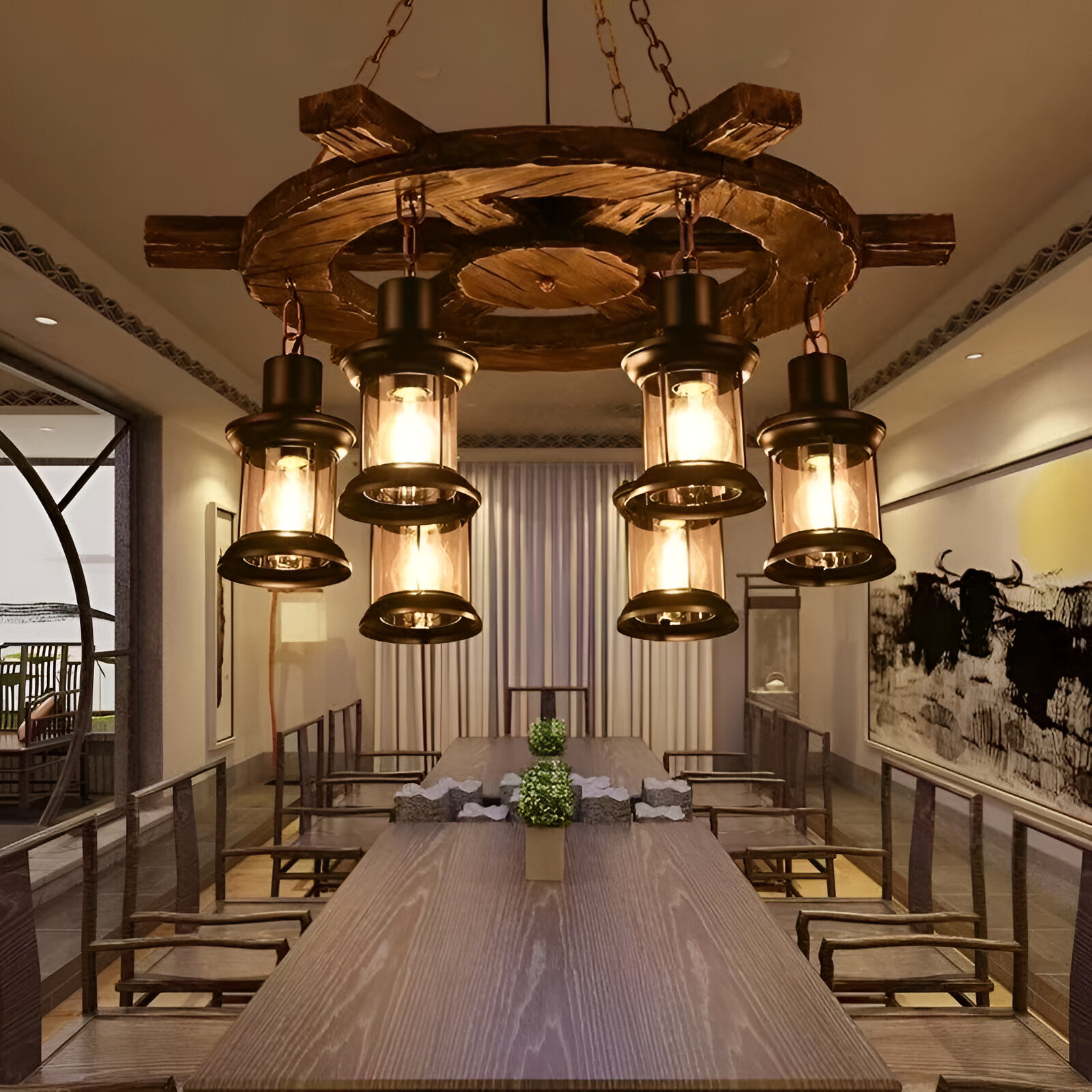 ✔ Utilizare: Living, dining, bucătărie, cafenele, baruri, restauranteAceastă lustra suspendată este perfectă pentru interioarele care pun accent pe naturalețe, stil și originalitate.