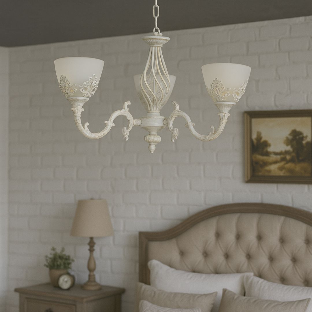 Lustra VINTAGE, tip Pendul cu brate, COTTAGE, Circulara, 3xE27, Sticla si Metal, Alb