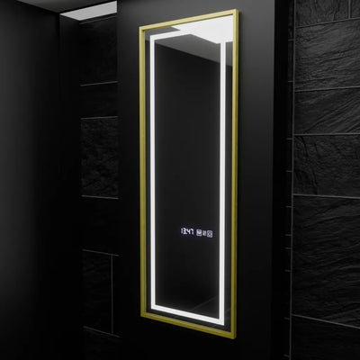 Oglinda LED Rectangulara, 100x80cm, Verite Royale Gold Motion Glow Marcello, Sistem Dezaburire, Ceas & Termometru, Dimabila