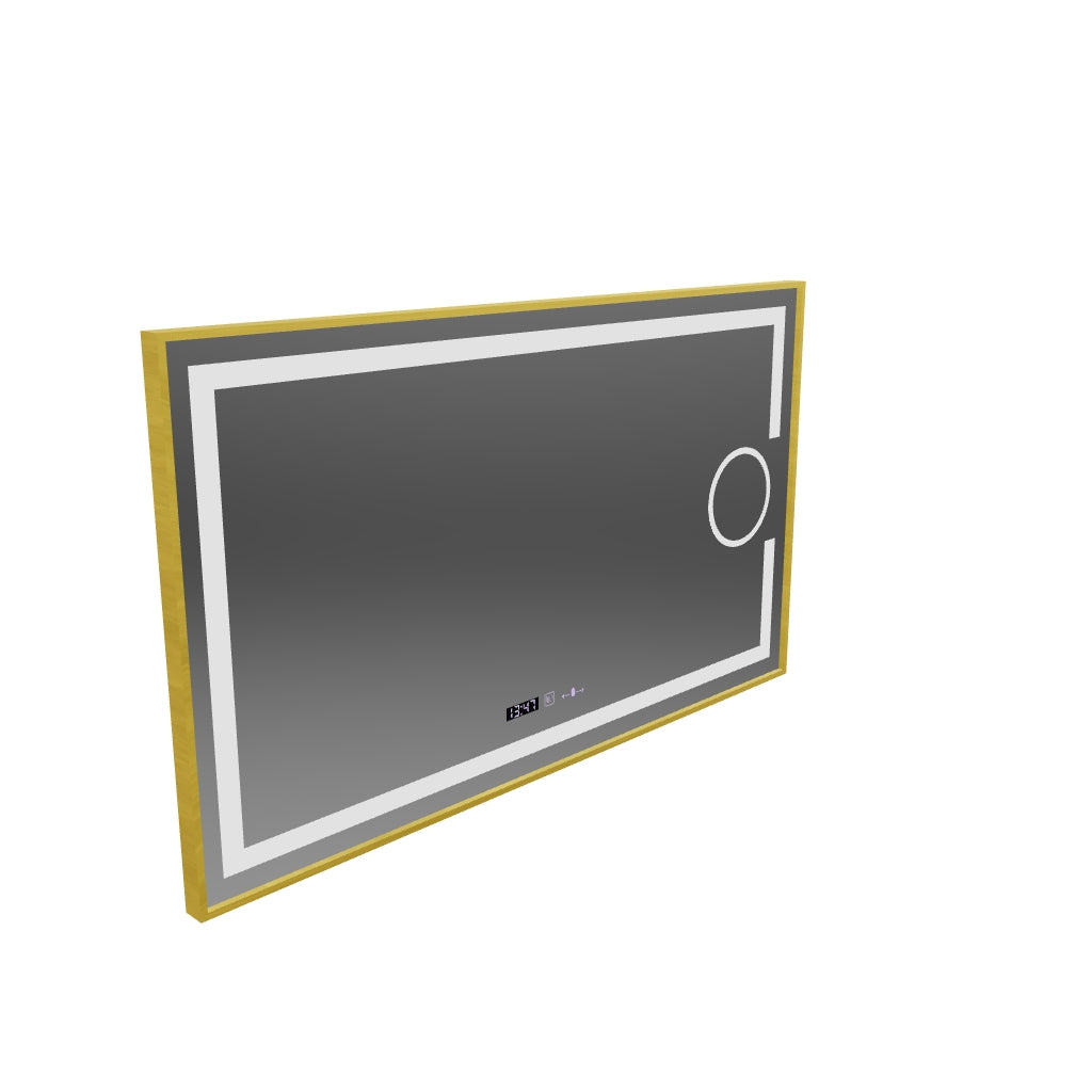 Oglinda LED Rectangulara, 120x80cm, Eclat MotionGlow Marcello, Sistem Dezaburire, Ceas & Termometru, Lupa Cosmetica, Dimabila, Rama Auriu Brushed
