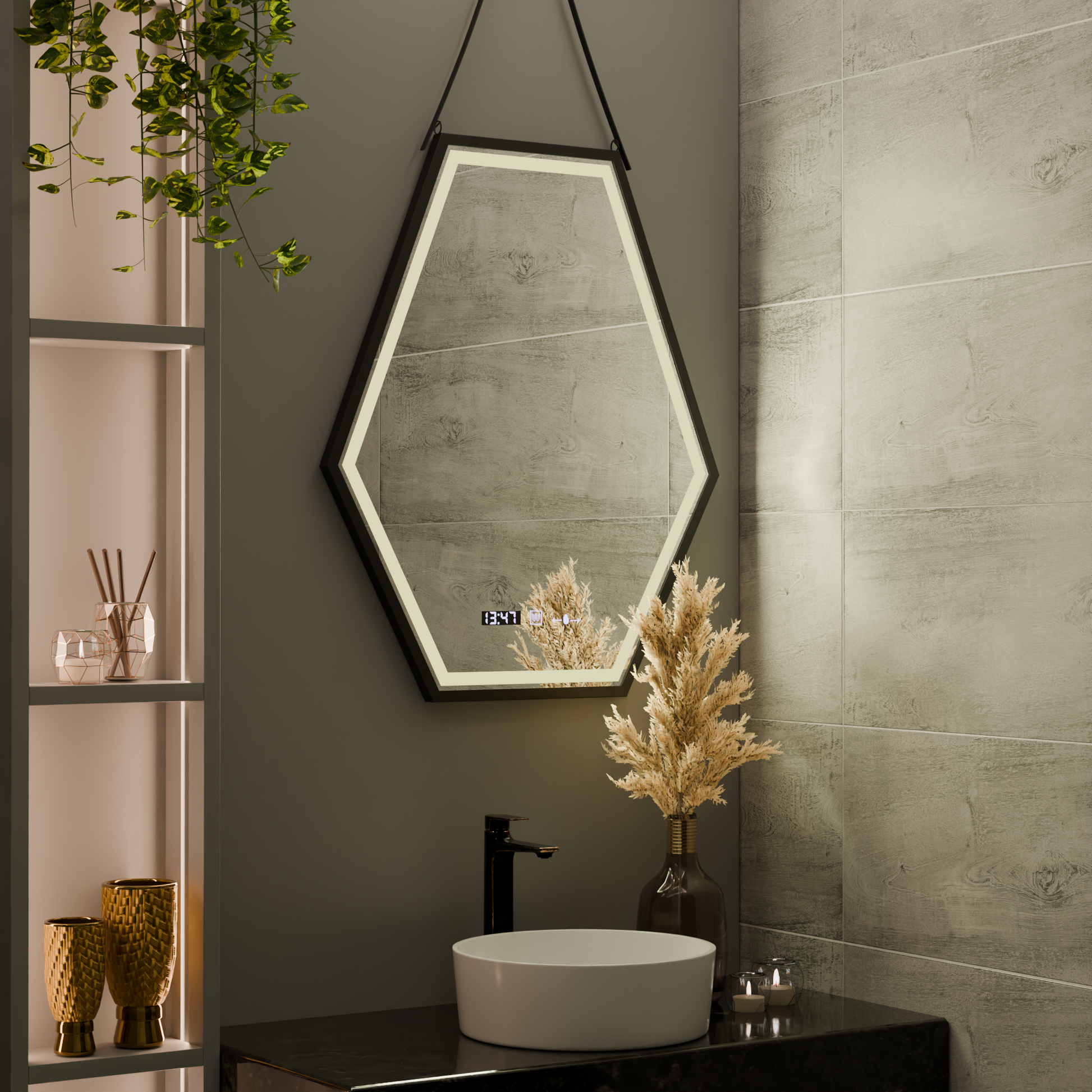 Oglinda LED Rectangulara, 55x70cm, Senzor MotionGlow Marcello, Sistem Dezaburire, Ceas & Termometru, Dimabila