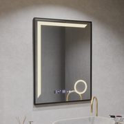 Oglinda LED Senzor MotionGlow Francesca 60x80 cm Lumina Calda/Rece/Neutra Dimabila Rama Negru Brushed Sistem Dezaburire Termometru Ceas Colectia Marcello Funghi