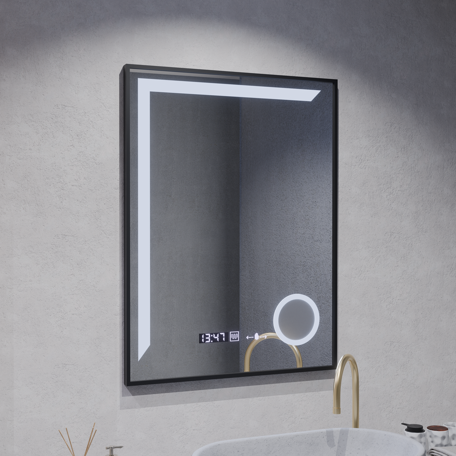 Oglinda LED Rectangulara, 60x80cm, Verite Majeste Noir Motion Glow Marcello, Sistem Dezaburire, Ceas & Termometru, Dimabila