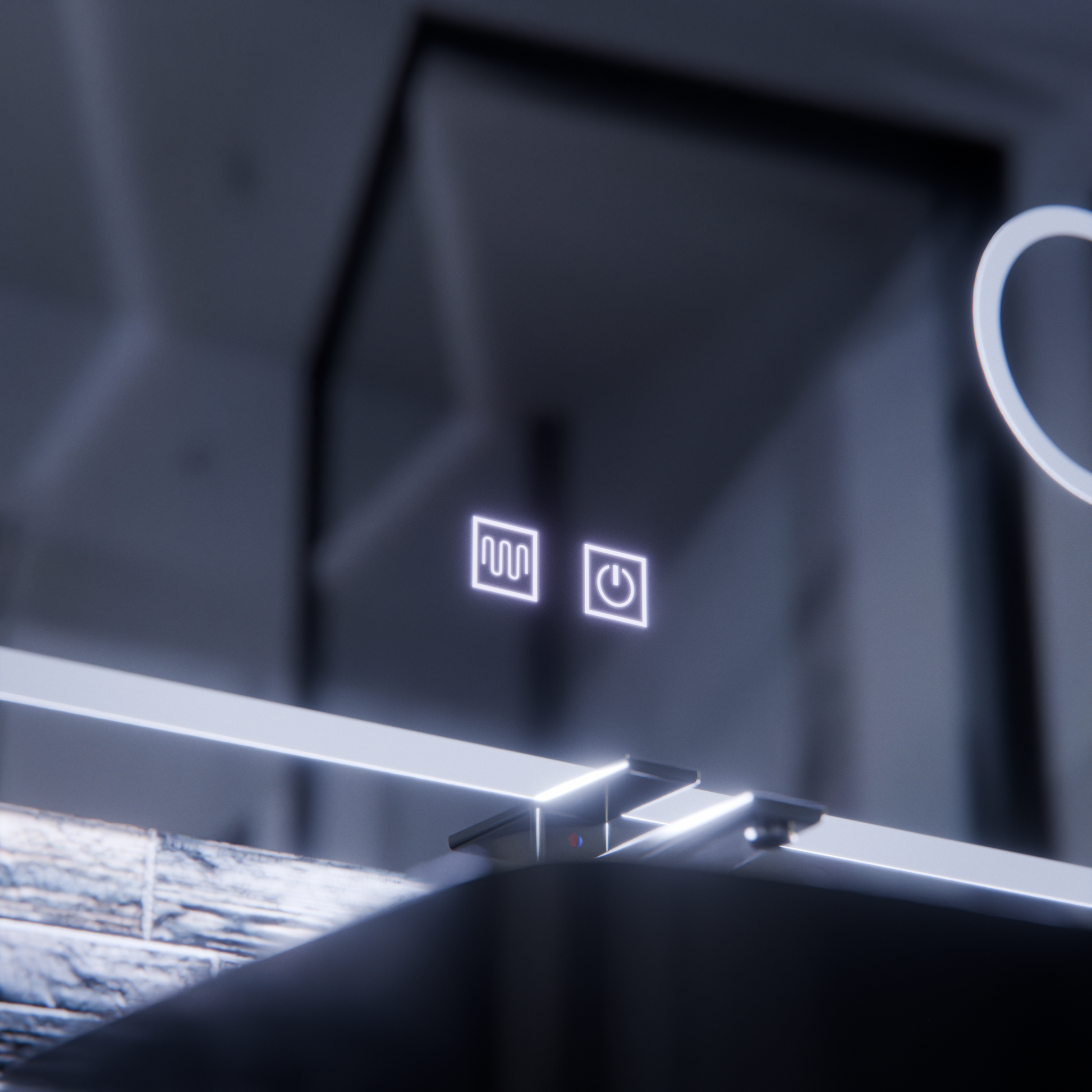 Control tactil intuitiv pentru pornire/oprire și reglare rapidă a luminii. Funcția de dezaburire integrată menține suprafața oglindei curate după dușuri fierbinți, fără abur.