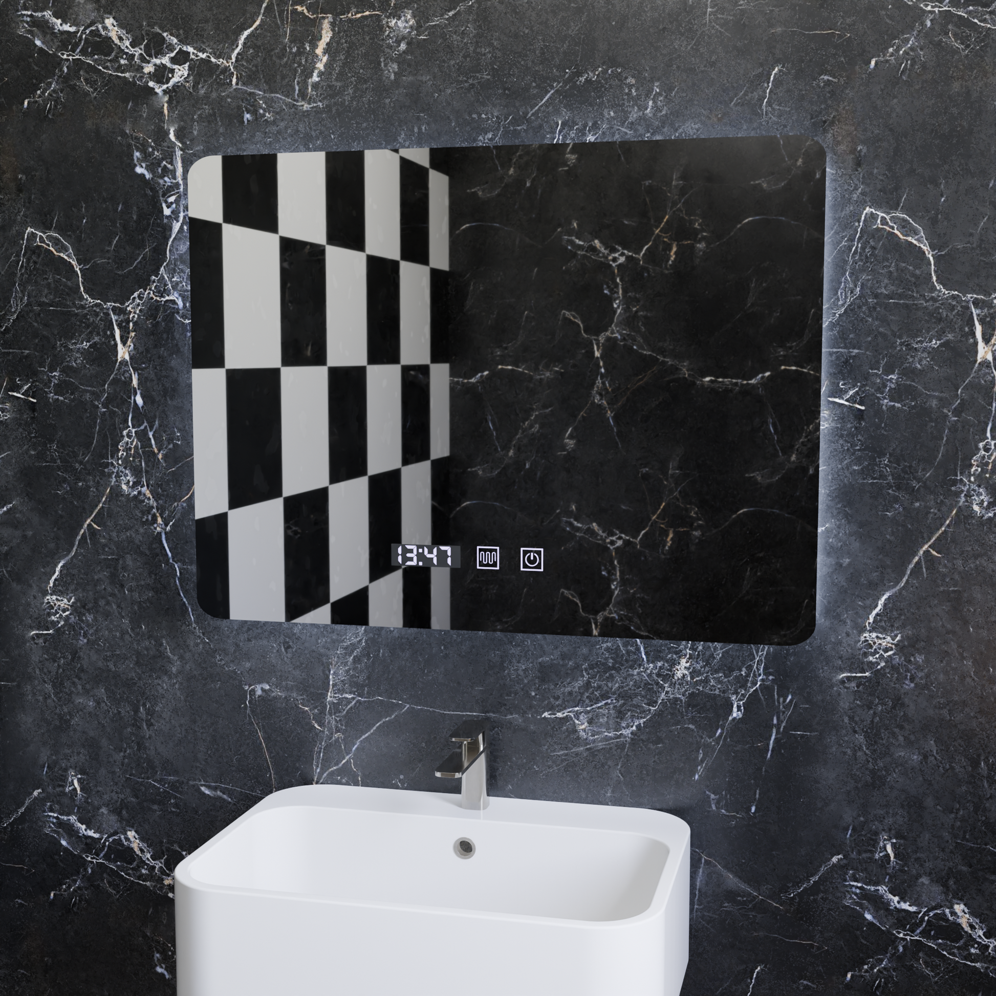 Oglinda LED Dreptunghiulara ARTAR Touch, 80X60cm, Sistem Dezaburire, Dimabila, Ceas si Temperatura